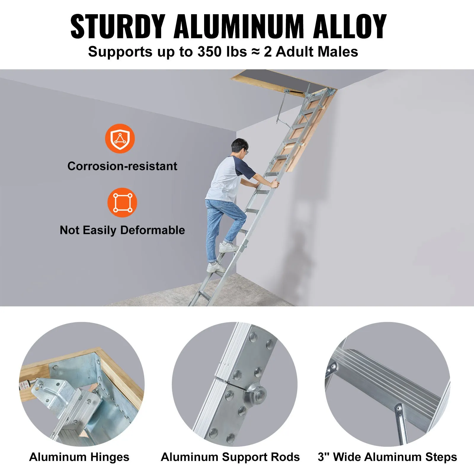Teleskopický rebrík 158,8 kg, 12 schodov, montážna výška od 290 do 300 cm alebo 341 do 366 cm, skladací rebrík, hliníkový + drevený domáci rebrík s hydraulicky tlmeným zostupom.