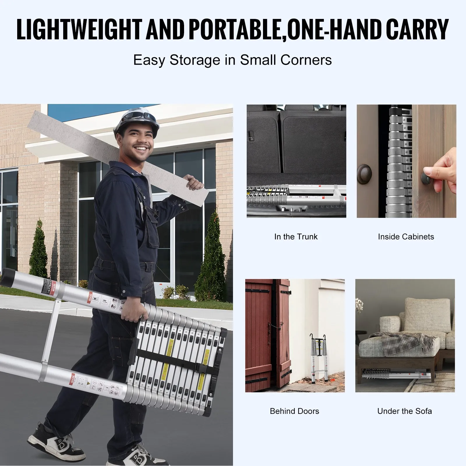 Teleskopický rebrík , 6,2 m ľahký hliníkový výsuvný rebrík, skladací rebrík s viacnásobným zasúvacím mechanizmom, nosnosť 190 kg s protišmykovými priečkami, prenosný kompaktný rebrík do domácnosti, karavanu, podkrovia