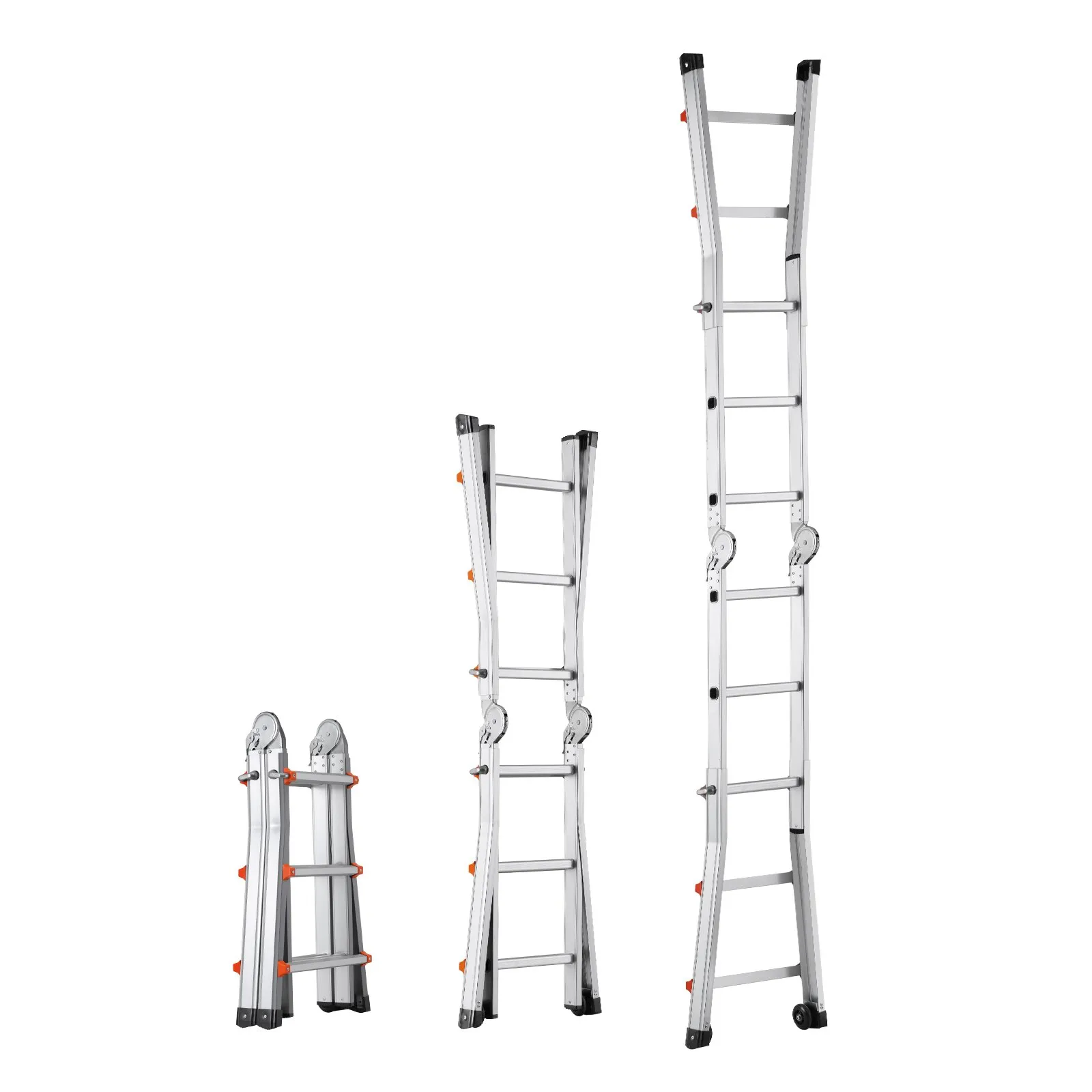Všestranný rebrík: Tento teleskopický rebrík sa prispôsobí rôznym požiadavkám a dá sa ľahko meniť medzi rôznymi konfiguráciami. S výsuvnými nohami až do 180° a maximálnou výškou 2880 mm je ideálny na údržbárske práce alebo čistenie podkrovia.