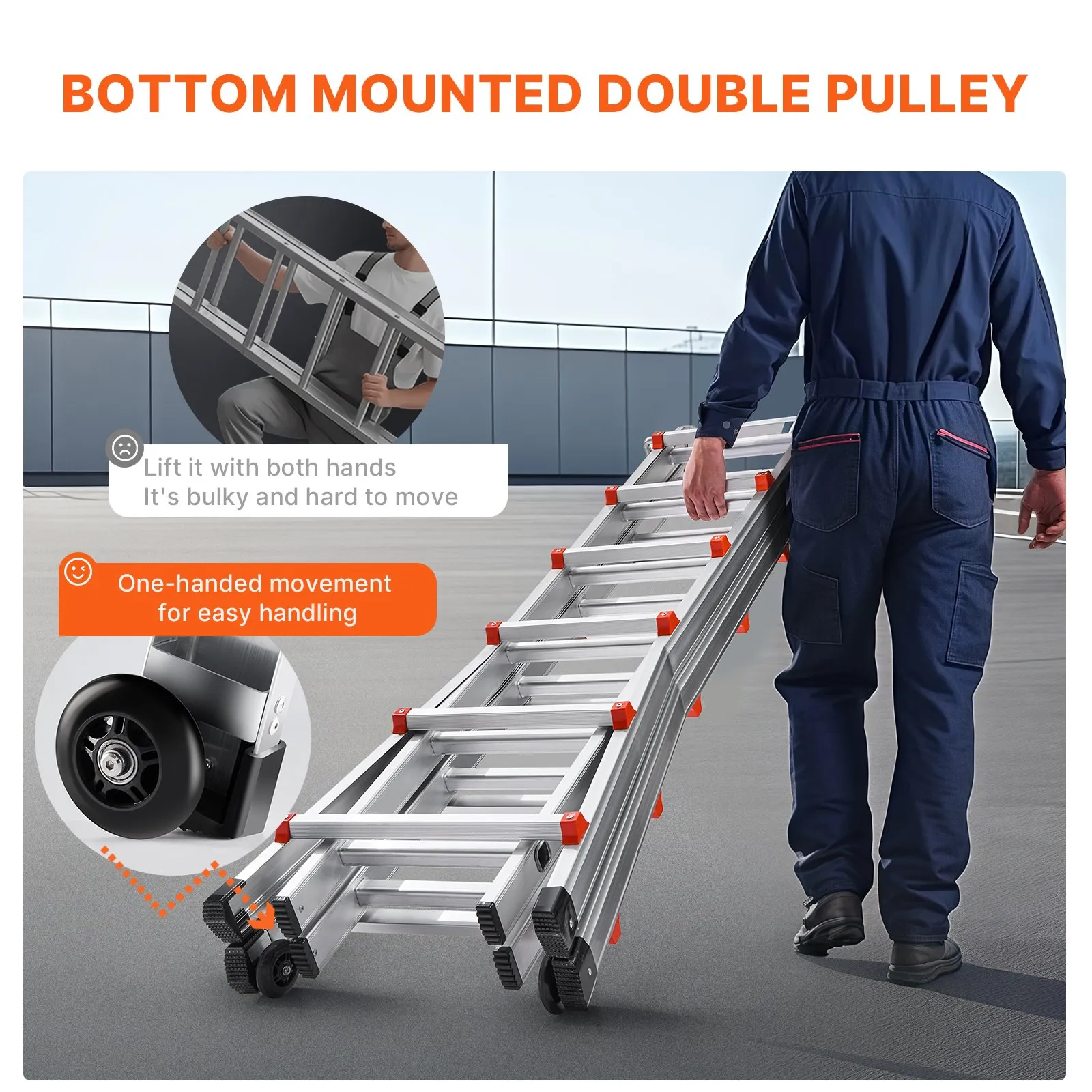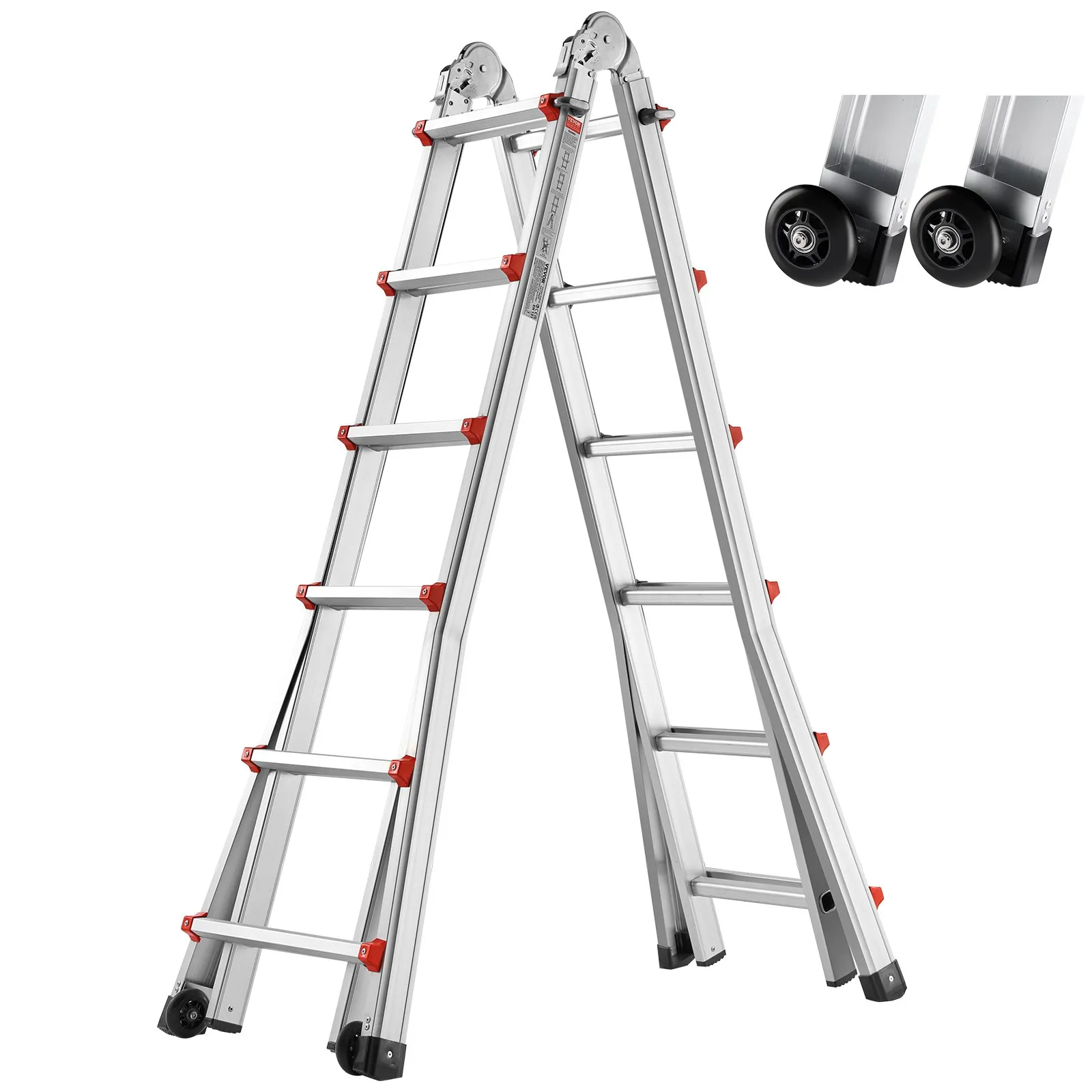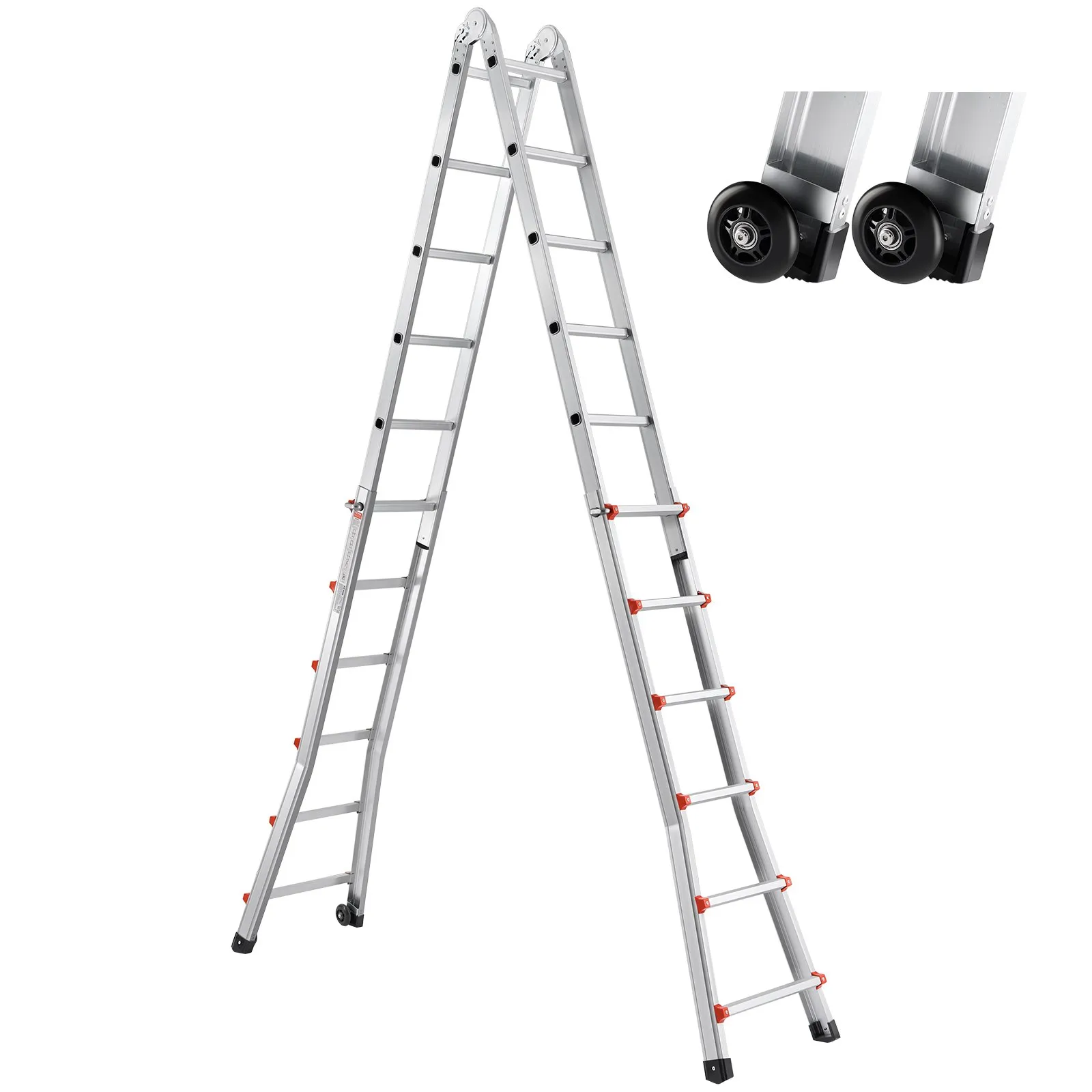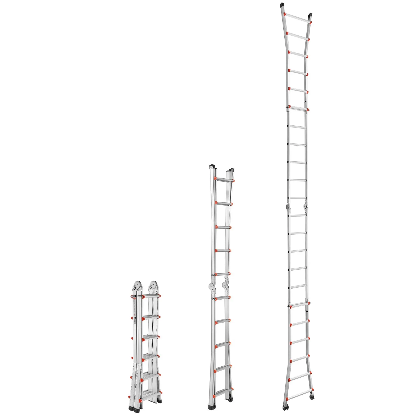 • Všestranný rebrík: Tento výsuvný rámový rebrík sa prispôsobí rôznym potrebám a dá sa ľahko meniť medzi rôznymi konfiguráciami. S výsuvnými nohami až do 180° a maximálnou výškou 6230 mm je ideálny na údržbárske práce alebo čistenie podkrovia.