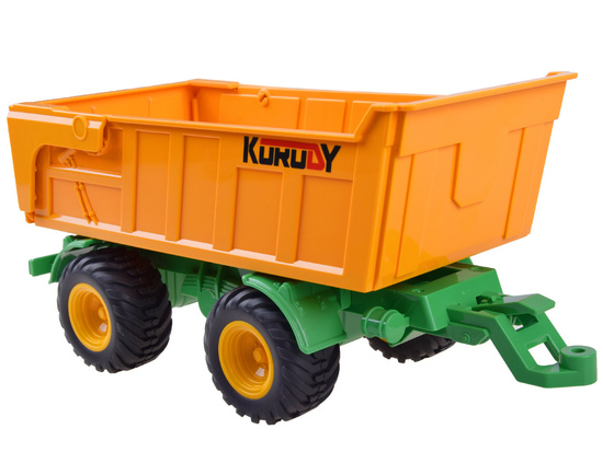 Diaľkovo ovládaný traktor vybavený svetelnými efektmi osvetlí každú trasu alebo cestu. Ako sa na správne vozidlo tohto typu patrí, traktor nesmie chýbať ani príves. Príves má veľkú nosnosť, čo umožňuje prepravu ešte väčšieho množstva nákladu. Príves má vzadu otváracie zadné dvere a funkciu sklápania. Keď príves nie je potrebný, je možné ho odpojiť. Traktor je poháňaný priloženou batériou, čo výrazne znižuje prevádzkové náklady.