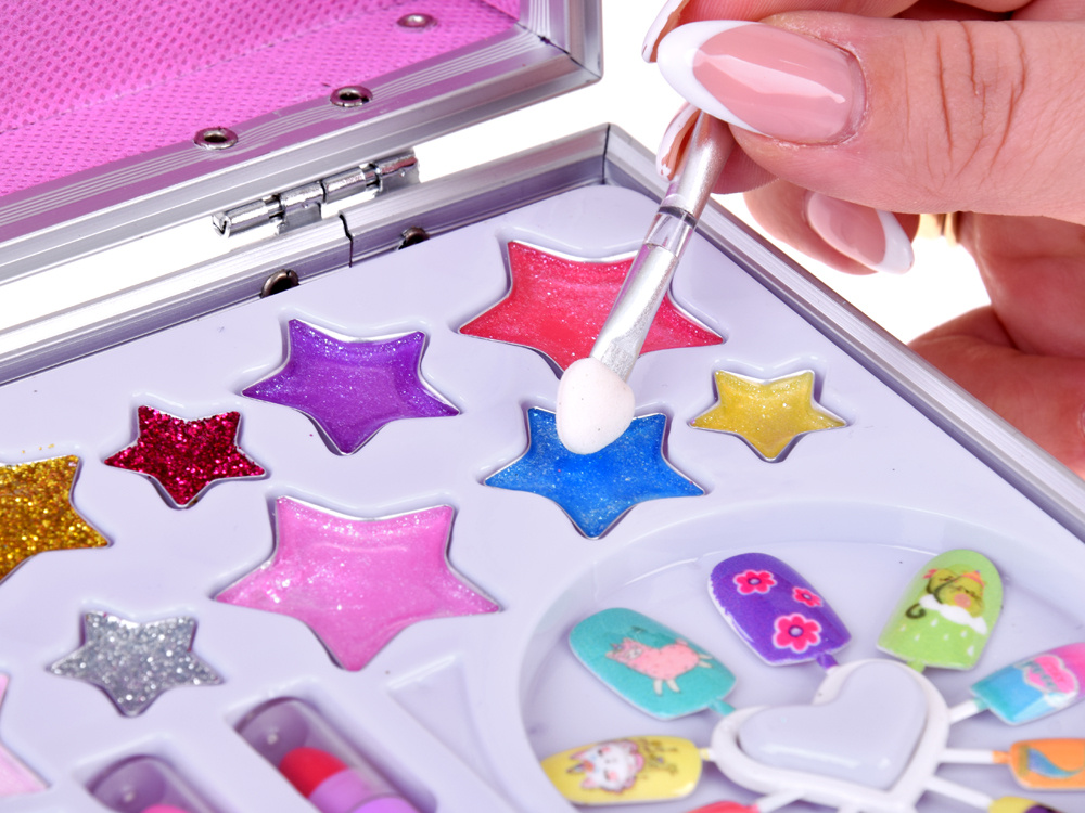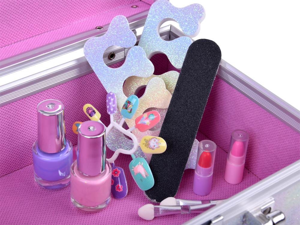 Puzdro obsahuje rôzne dievčenské vecičky na lakovanie nechtov, očných viečok a pier. Pre jednoduchšie lakovanie  je vo vnútri pripevnené zrkadielko.