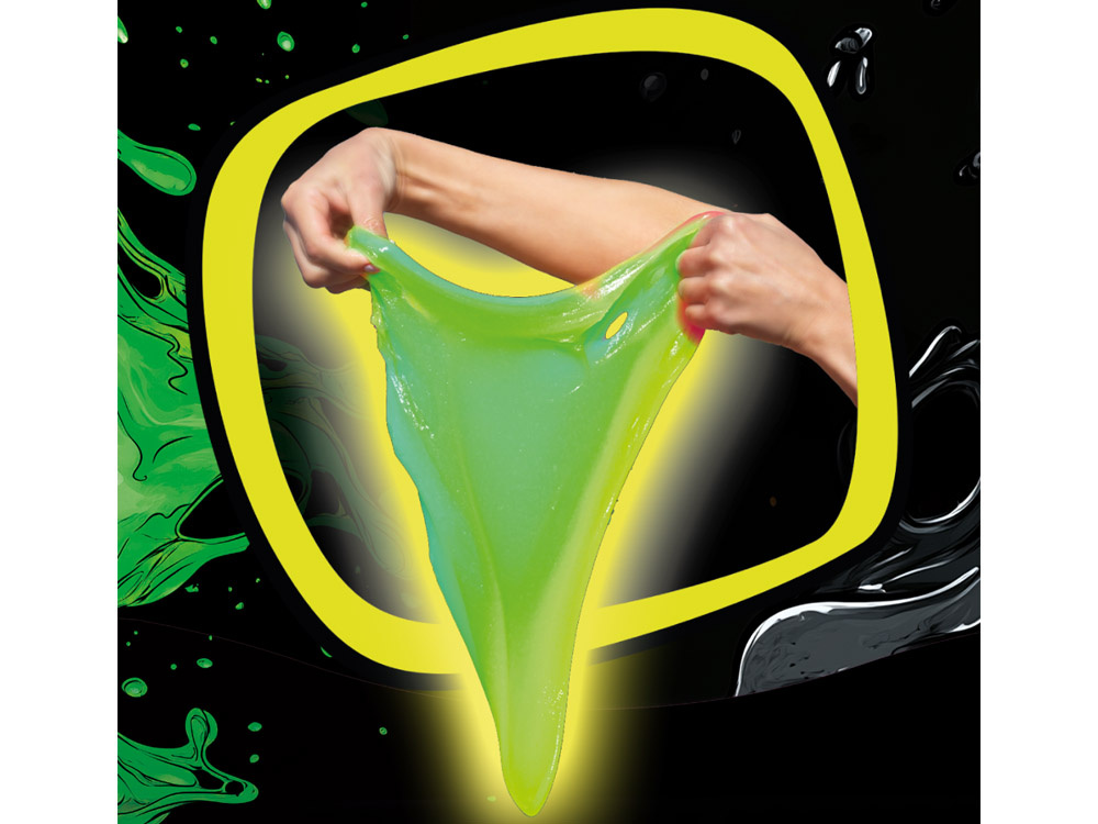Vďaka svojmu jedinečnému zloženiu sa Jiggly Slime hravo trasie ako želé a naťahuje sa všetkými smermi ako guma. Tento nový sliz si priam pýta, aby ste ho miesili, podávali z ruky do ruky, naťahovali všetkými smermi a fúkali z neho bubliny celé hodiny. Žiarivé farby Jiggly Slime sú potešením pre oči a žiaria v tme! Stačí sa hrať, podávať z ruky do ruky.