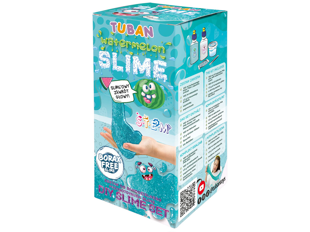 Sada SUPER SLIME od TUBAN je ideálna pre deti, ktoré milujú experimentovanie! Sliz je medzi deťmi obľúbená hra a s touto sadou si budete môcť vytvoriť vlastný sliz úplne sami. Tento farebný sliz nielenže skvele vyzerá, ale má aj príjemnú melónovú vôňu. Priložené trblietky urobia váš sliz ešte pôsobivejším.