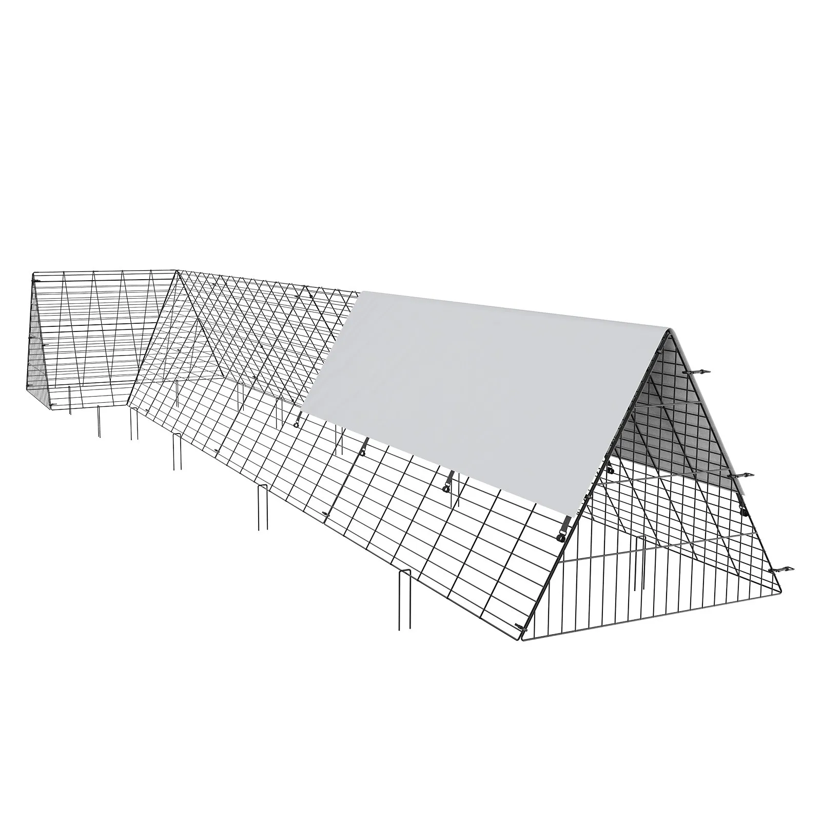 Jednoduchá montáž alebo inštalácia svojpomocne: Navrhnuté pre pohodlnú inštaláciu a mobilitu, vybavené zámkami, zemnými kolíkmi a káblovými zväzkami pre rýchlu montáž. Tieto skladacie tunely pre kurčatá do dvora šetria miesto a umožňujú jednoduché nastavenie oblasti aktivity kurčiat, čím zvyšujú flexibilitu pri chove.