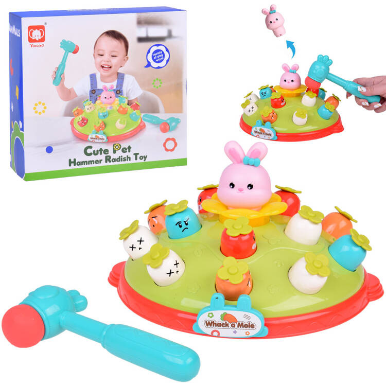 „Udri to kladivom“ – okrúhle pole mrkvy s ružovým zajačikom na vrchu – je skvelá hračka, ktorá pomôže vášmu dieťaťu odbúrať stres, keď je po dlhom dni premotivované.