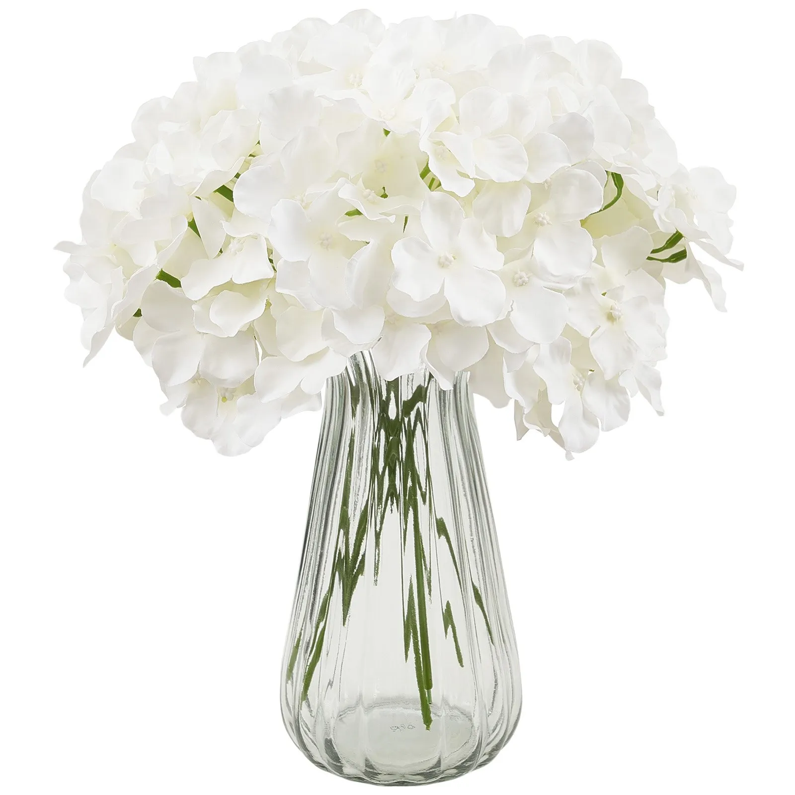 Umelé kvety, 105 kusov bielych umelých hodvábnych hortenzií, biele umelé kvety so stonkami na výrobu svadobných kytíc svojpomocne, stolové dekorácie do domácnosti, dekorácie na párty stôl