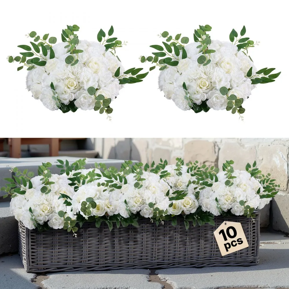 Umelé kvety, balenie 10 kusov bielych ruží s priemerom 450 mm, kvetinové gule, kytice z umelých kvetov na svadobné aranžmány, stolové dekorácie do domácnosti
