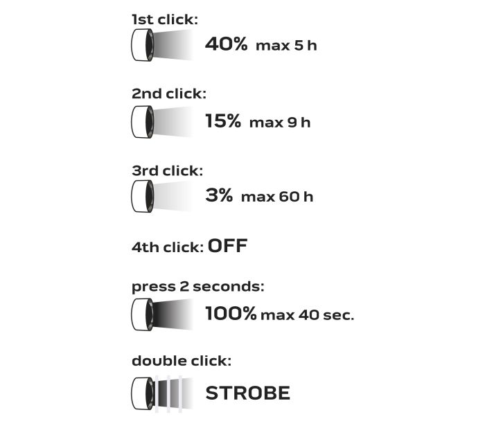 - Režimy prevádzky100 % (max. 40 sekúnd), 40 %, 15 %, 3 %, stroboskop
