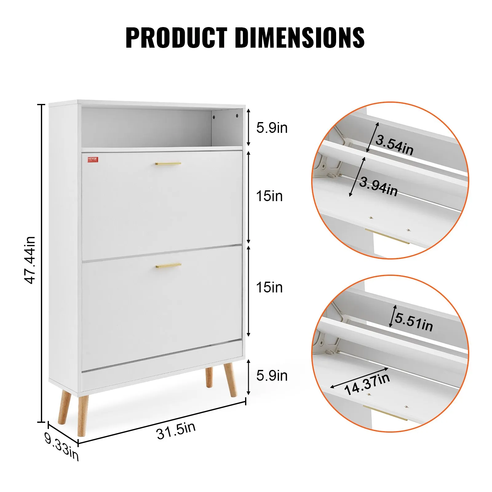 Úzka skrinka na topánky , biely stojan na topánky, 800 x 237 x 1205 mm, skrinka na topánky s 2 výklopnými dvierkami + horný úložný priestor, botník s nosnosťou 68 kg, skrinka na topánky z masívneho dreva na použitie do chodby a vonku