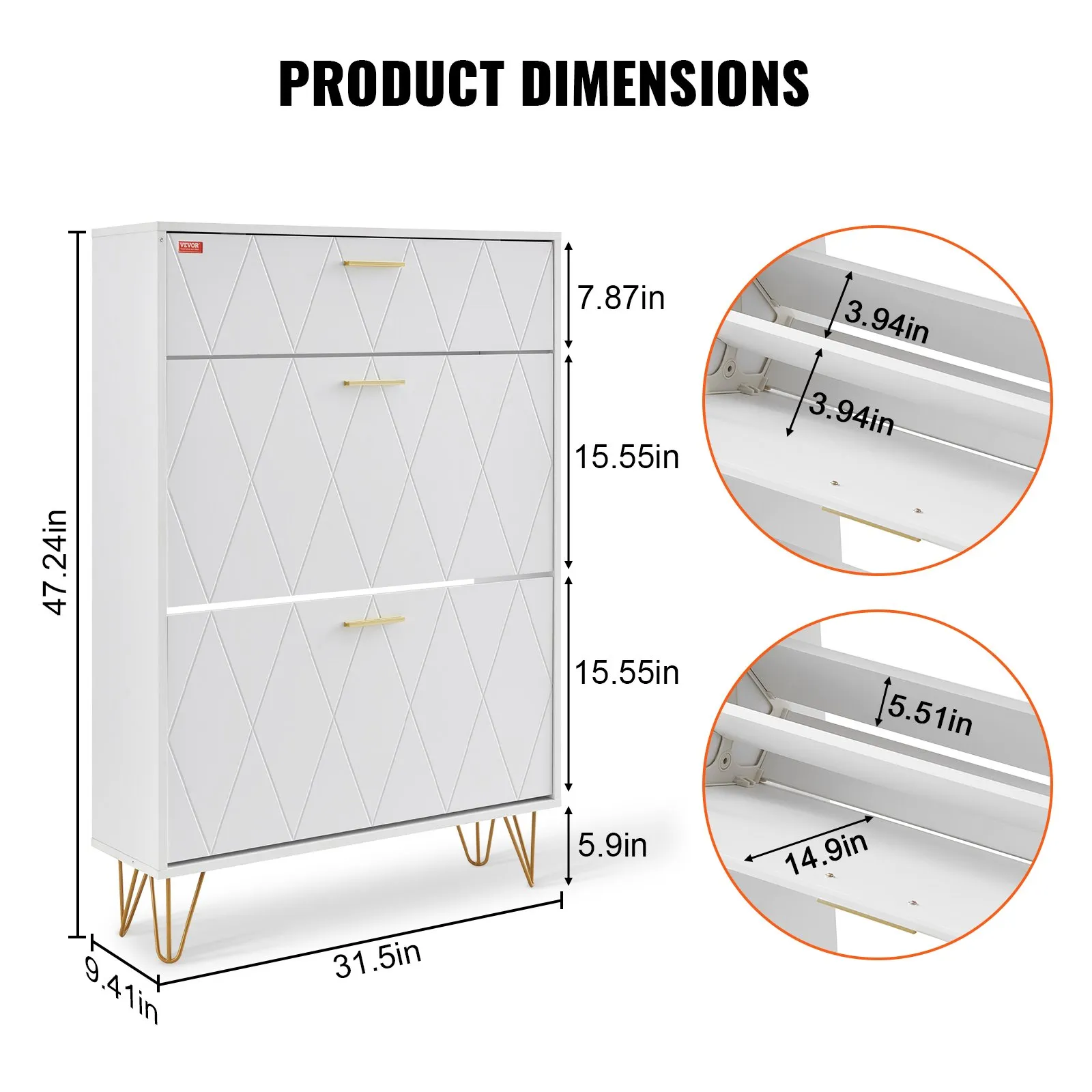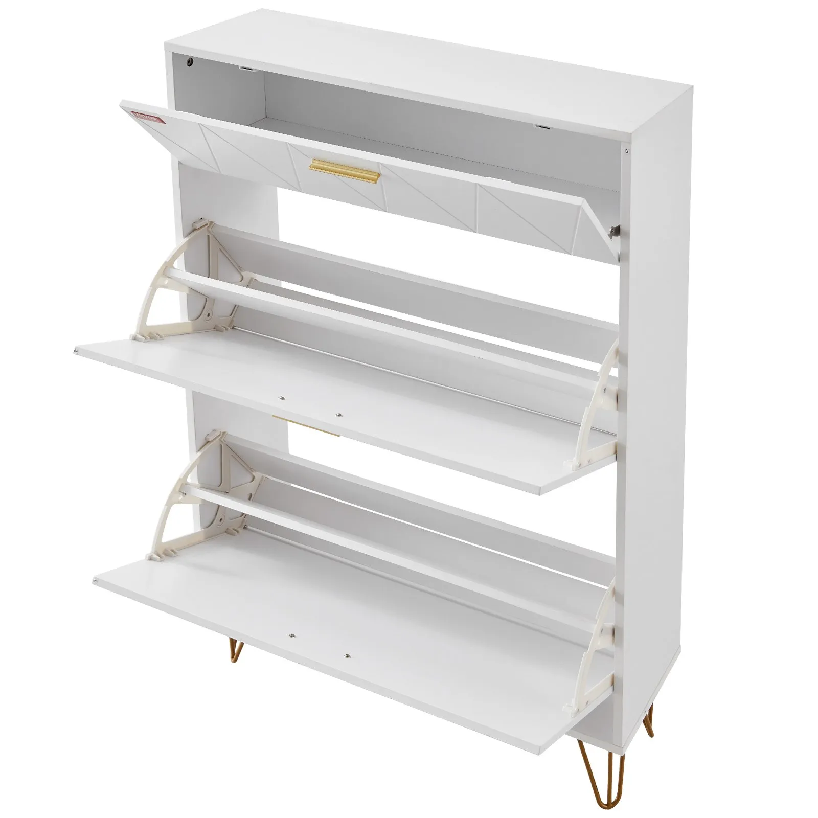 Veľa úložného priestoru: Vďaka trom výklopným zásuvkám sme maximalizovali úložnú kapacitu. V porovnaní s podobne veľkou skrinkou na topánky sa do nej zmestí viac topánok rôznych štýlov vrátane vysokých podpätkov a členkových čižiem.