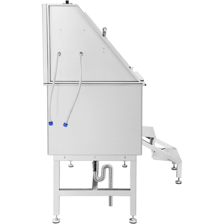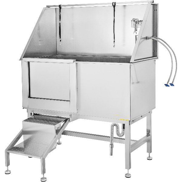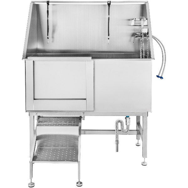 Vaňa z nehrdzavejúcej ocele: Rozmery výrobku: 125 x 64 x 151 cm – je vhodný pre psov rôznych veľkostí. Vanička na starostlivosť o domáce zvieratá je vyrobená z nehrdzavejúcej ocele, ktorá sa nedeformuje, je odolná proti hrdzi, poškriabaniu a dostatočne pevná na dlhodobé používanie. Odolná nerezová vanička na starostlivosť o domáce zvieratá sa navyše ľahko udržiava a čistí.
