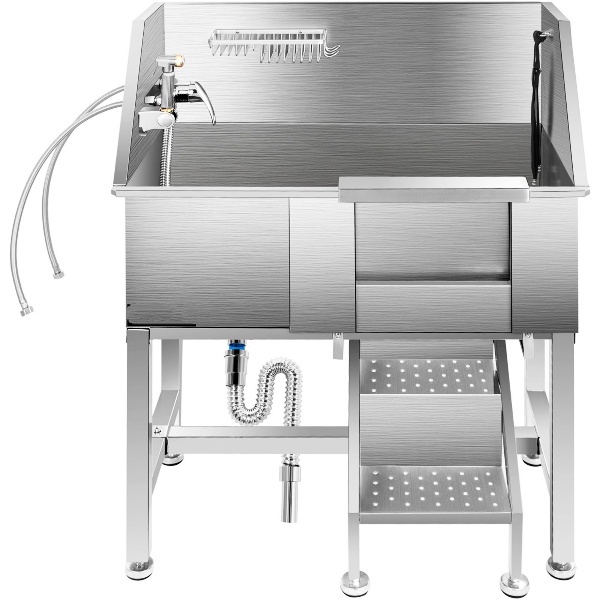 Vaňa z nehrdzavejúcej ocele: Rozmery výrobku: 86.8 x 46.7 x 110.4 cm. Vanička na starostlivosť o domáce zvieratá je vyrobená z nehrdzavejúcej ocele, ktorá sa nedeformuje, je odolná proti hrdzi, poškriabaniu a dostatočne pevná na dlhodobé používanie. Odolná nerezová vanička na starostlivosť o domáce zvieratá sa navyše ľahko udržiava a čistí.