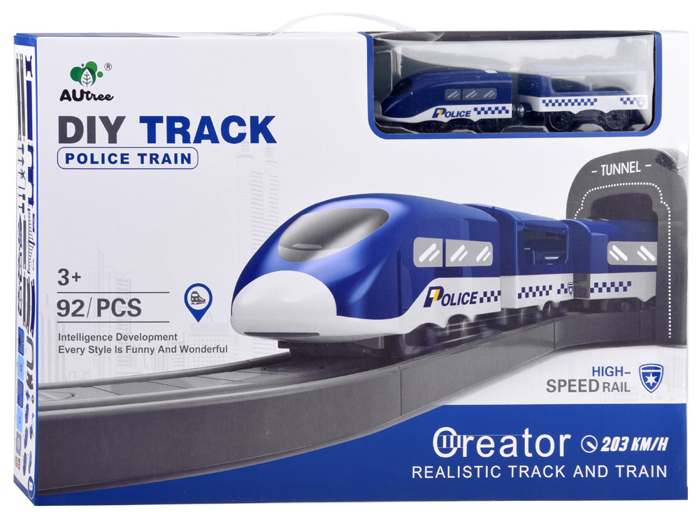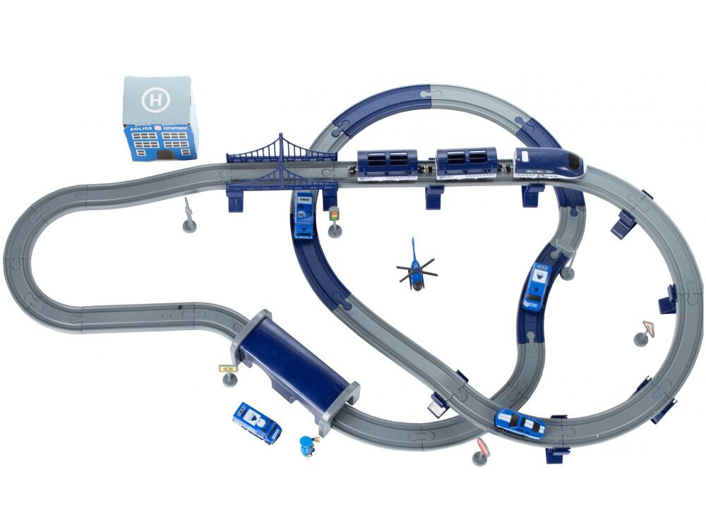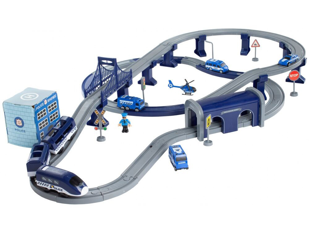 Táto bohato vybavená 92-dielna sada vám umožňuje postaviť vlakovú trasu s mostami, viaduktmi a tunelmi. Okolo trasy môžete umiestniť dopravné značky, ako aj policajnú stanicu s pristávacou plochou pre vrtuľník.