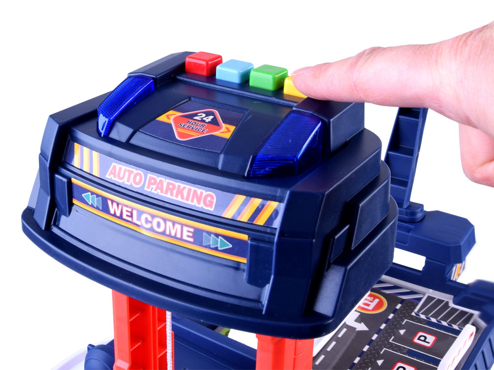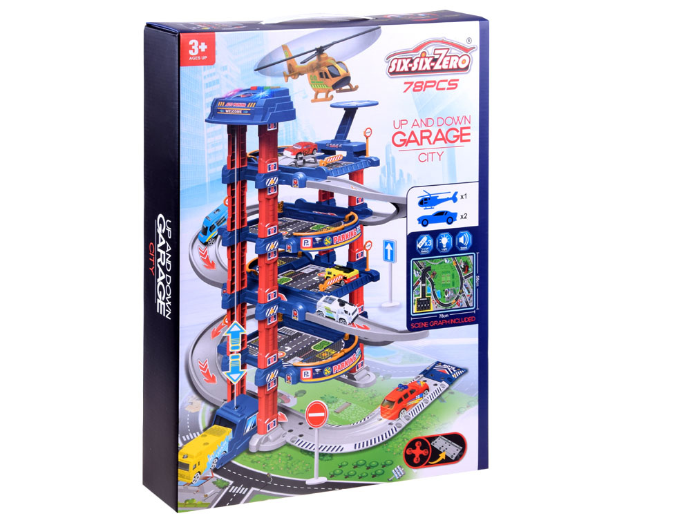 Veľké parkovisko s dráhami pre autá, pristávacou plochou pre vrtuľník a elektrickým výťahom poskytne každému dieťaťu nekonečnú zábavu. Viacúrovňová garáž má vyhradené parkovacie miesta, čerpaciu stanicu, výťah pre autá a pristávaciu plochu pre vrtuľník. Na samom vrchu parkoviska sa nachádza ovládacia stanica výťahu.
