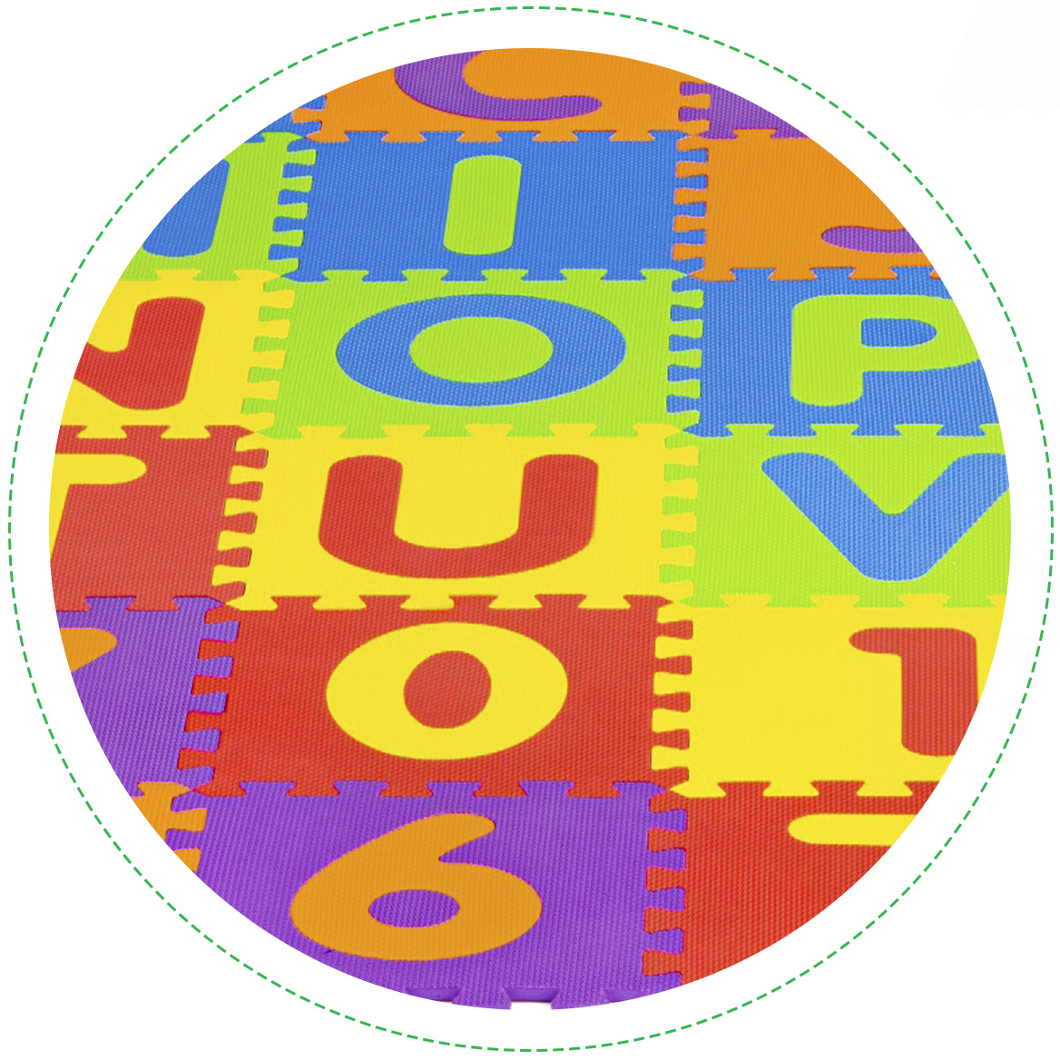 • Podložka má špeciálnu protišmykovú textúru a je úplne bezpečná pre deti. Každý zo štvorcov má čísla a písmená, čo umožní skvelú zábavu so vzdelávacími prvkami.