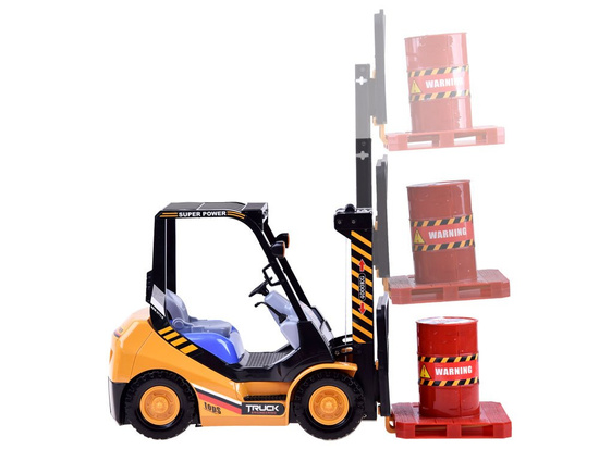 Tento diaľkovo ovládaný, krásne vyrobený a plne funkčný vysokozdvižný vozík poskytne nezabudnuteľnú zábavu každému mladému skladníkovi. Toto fantastické vozidlo je plne funkčný RC vysokozdvižný vozík vybavený diaľkovo ovládanými vidlicami, vďaka čomu je hranie sa s malým skladníkom neuveriteľne realistické. Tento vysokozdvižný vozík pre deti má vidlice, ktoré je možné zdvihnúť do výšky 28 centimetrov! Súčasťou balenia je paleta a valec, ktoré vám umožnia precvičiť si obsluhu vysokozdvižného vozíka. Veľké 7-centimetrové kolesá poskytujú vynikajúcu trakciu, zatiaľ čo rázvor 12,5 centimetra zaisťuje stabilitu.