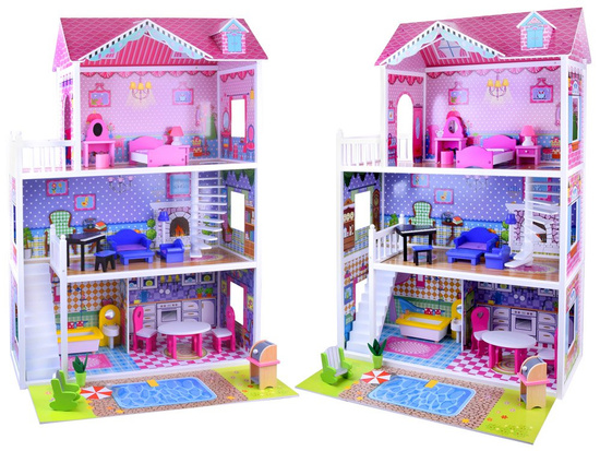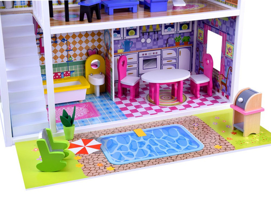 VEĽKÝ drevený DOMČEK PRE BÁBIKY, nábytok, bazén, LED osvetlenie ZA2122