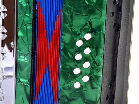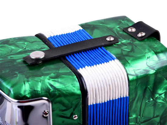 Nový, veľký zelený detský akordeón je ideálny pre zvedavé a dobrodružné deti, ktoré si užívajú hudbu vo všetkých jej podobách. Tento detský akordeón vyzerá ako skutočný hudobný nástroj, rozvíja motorické zručnosti a zlepšuje hudobnú citlivosť a schopnosť rozlišovať zvuky. Princíp fungovania je rovnaký ako pri skutočnom akordeóne – na vytvorenie zvuku je potrebné vytvoriť a skomponovať harmóniu. Zelený detský akordeón má navyše klávesy a basové gombíky.