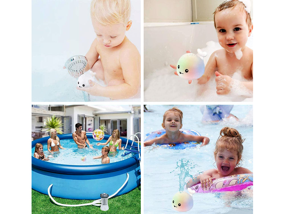 Veľryba je hračka pre každé dieťa, ktoré sa rado kúpe, má rado morské živočíchy a dokonca aj jazdu na vozidlách. Veľryba na pojazdnej plošine spĺňa všetky tieto kritériá. Samotná veľryba je určená na vodné hry počas večerných kúpeľov, hry v bazéne alebo detskom bazéniku. Po ponorení sa hračka automaticky aktivuje a vytvorí mini fontánu sprevádzanú farebnými, meniacimi sa svetlami. Keď dieťa umiestni veľrybu na plošinu a prepne vypínač, pasažier sa začne jazdiť do rytmu veselej hudby a farebných svetiel. Pojazdná plošina funguje iba vtedy, keď je na nej umiestnená veľryba.
