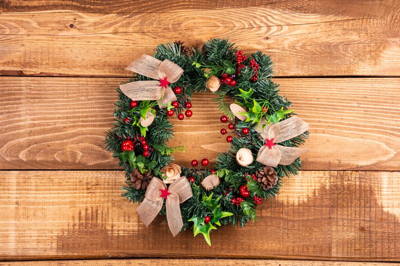 Veniec MagicHome Vianoce, s čečinou a mašľami, 41 cm