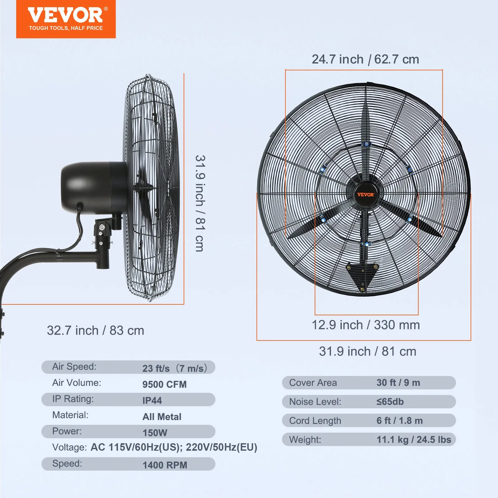 Oscilačný nástenný ventilátor: Pripravte sa dosiahnuť do každého kúta miestnosti! Tento priemyselný nástenný ventilátor s uhlopriečkou 29,5 palca (74,9 cm) je vybavený funkciou oscilácie 90 stupňov, ktorá mu umožňuje pokryť veľkú plochu. Pre optimálne prúdenie vzduchu sa dá tiež vertikálne nakloniť. Vychutnajte si robustnú celokovovú konštrukciu s minimálnym počtom montážnych skrutiek pre jednoduchú demontáž a čistenie.