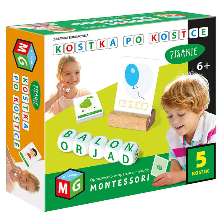 Kocka po kocke. Písanie je jednoduchá vzdelávacia hra pre malé deti, ktorá podporuje učenie sa písať a čítať. Použite sadu PIATICH kociek na vytvorenie troj-, štvor-, päť- alebo šesťpísmenových slov, ktoré opisujú obrázky na kartách. Táto hra povzbudzuje deti, aby rozpoznávali písmená a skladali z nich slová. Pomáha rozvíjať slovnú zásobu, rozvíja sústredenie a rozvíja rýchle myslenie.