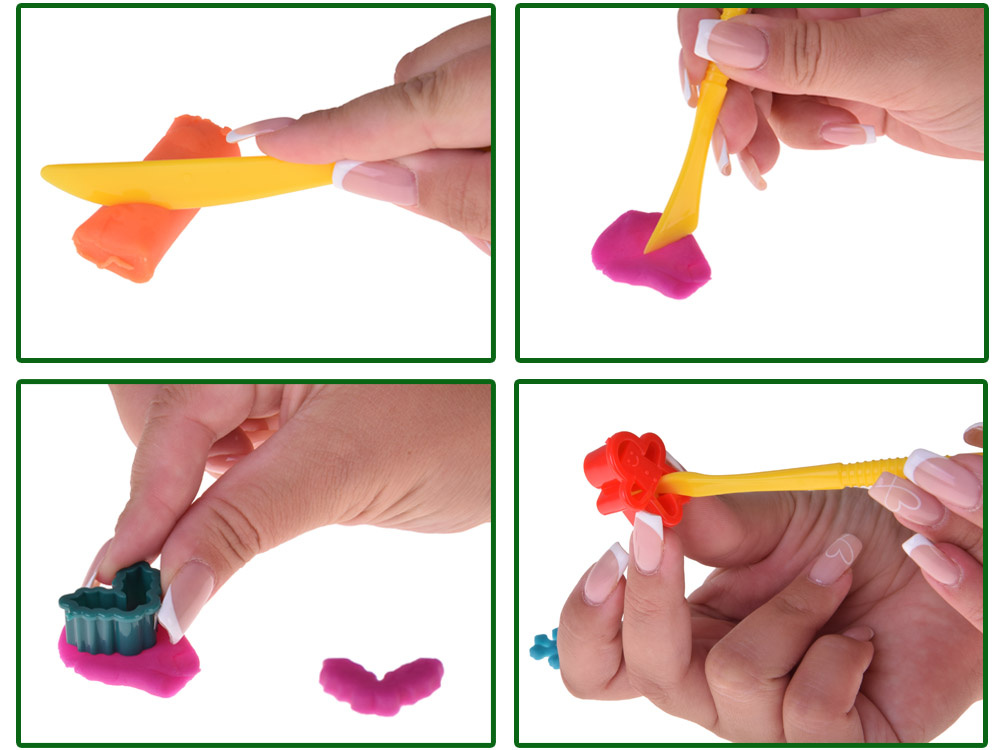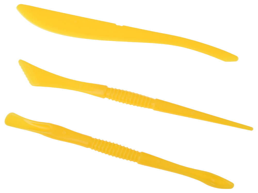 Sada obsahuje aj tri bezpečné plastové nože , ktoré vám pomôžu presne oddeliť prebytočnú hlinu a vytvoriť detailné prvky.