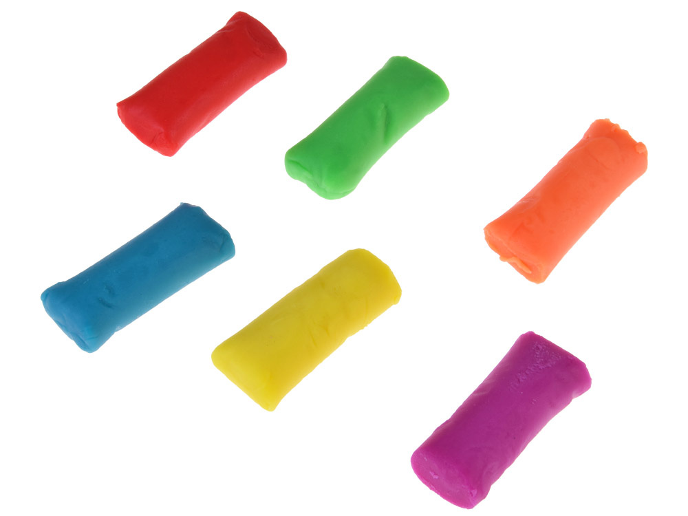- 6 farebných plastelín: zelená, modrá, červená, fialová, žltá, oranžová