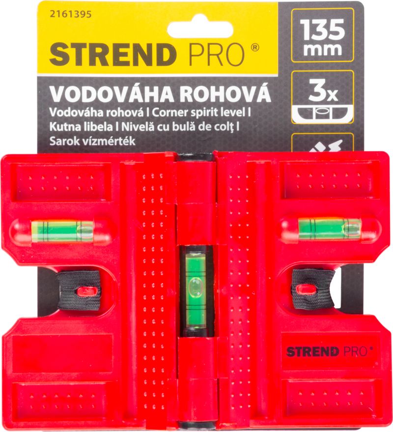 Vodováha Strend Pro FSB-12 je praktická uhlová vodováha, ktorú je možné zložiť. Je vhodná na všetky stĺpy, rúry alebo rôzne tyče. Vodováha je vybavená magnetom, ktorým je možné pripevniť ju na kovové povrchy. Na nekovové povrchy sa pripevní pomocou nastaviteľného elastického pásu. Vodováha by nemala chýbať vo výbave žiadneho majstra, či domáceho kutila. Dĺžka : 135 mm.