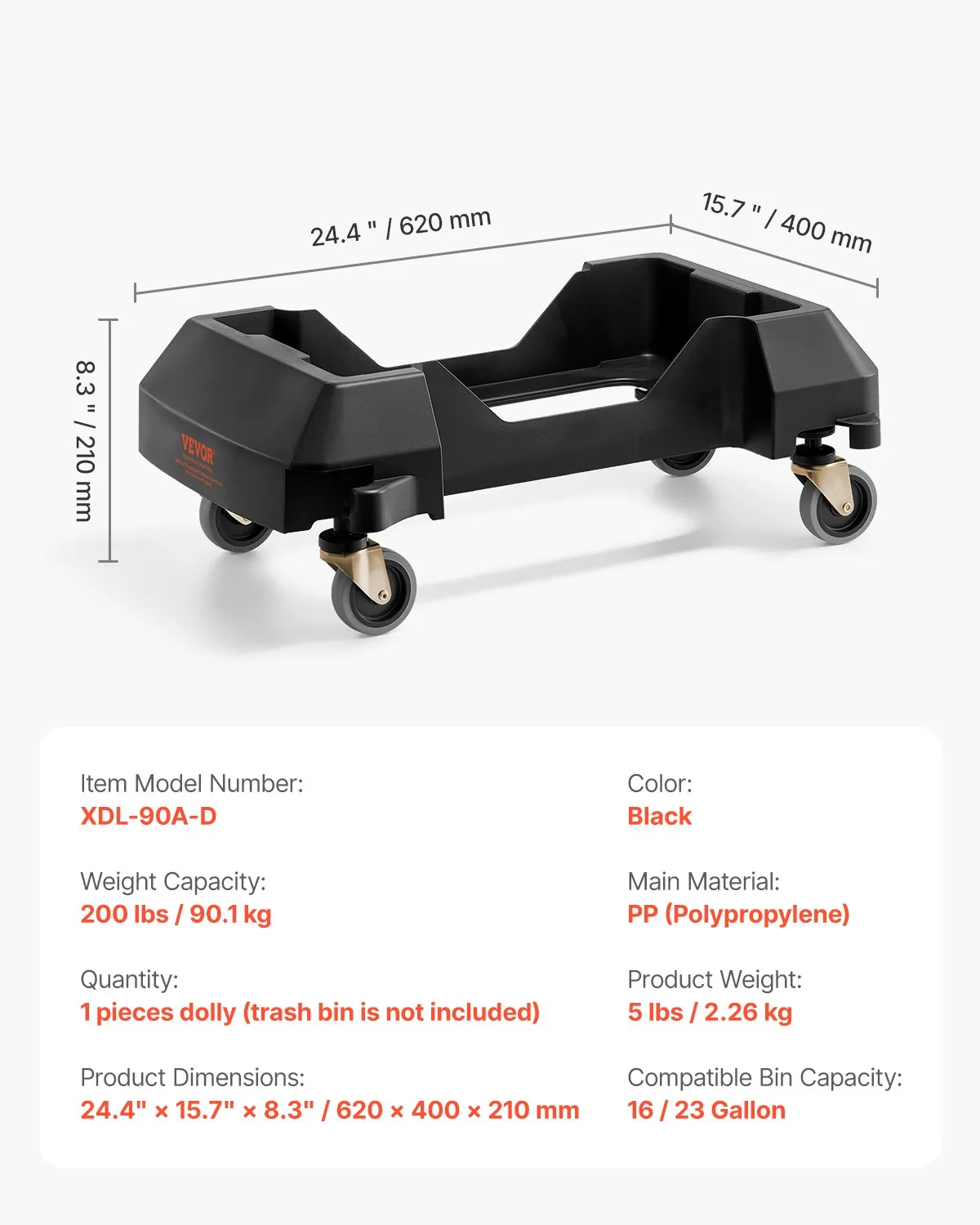 Vysoká nosnosť: S nosnosťou 90,1 kg je tento kontajner na odpadky kompatibilný s kontajnermi s objemom 60,6/87 l (16/23 galónov) a inými úzkymi kontajnermi na odpadky. Účinne znižuje záťaž pri preprave odpadu a poskytuje stabilné a spoľahlivé riešenie pre všetky vaše potreby v oblasti prepravy odpadu.