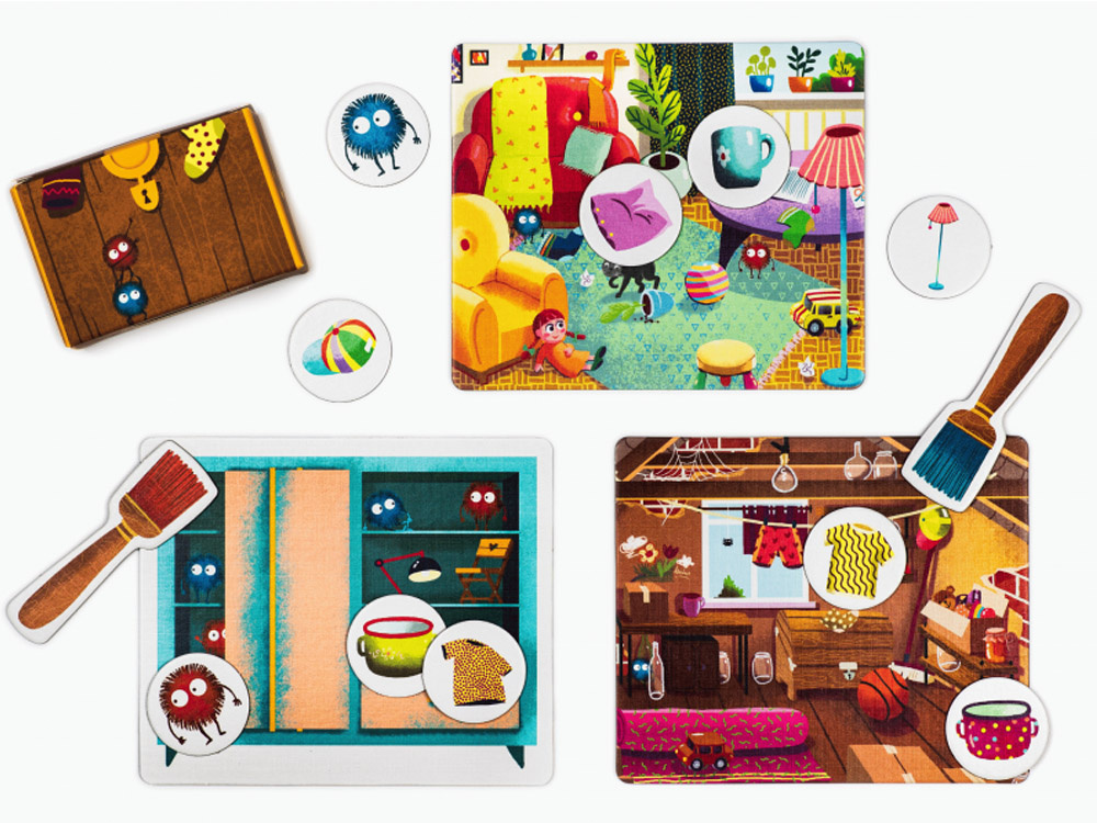 Aby hráči obnovili poriadok, hľadajú predmety roztrúsené po miestnostiach a hádžu ich do skladacej 3D truhlice. Prekážajú im malé, zákerné guľôčky, ktoré sa dajú odstrániť iba metlami.