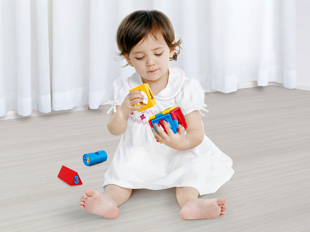 – Nájsť správny tvar – Do dvoch rokov má dieťa základné povedomie o tvaroch a dokáže rozlišovať medzi predmetmi rôznych veľkostí. Táto hračka pomôže vášmu dieťaťu naučiť sa základné tvary a vzbudiť v ňom záujem o geometrické objekty. Vkladanie tvarov do zodpovedajúcich otvorov si vyžaduje logické myslenie a pomáha stimulovať jeho predstavivosť. Týmto spôsobom si dieťa rozvíja priestorové vnímanie.