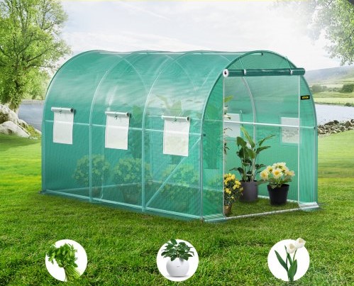 Veľkosť: 3,7 x 2,1 x 2,1 m. Náš tunelový fóliovník má veľký úložný priestor s jednými dverami a 6 sieťovanými oknami na zvýšenie prietoku vzduchu pre rast rastlín.