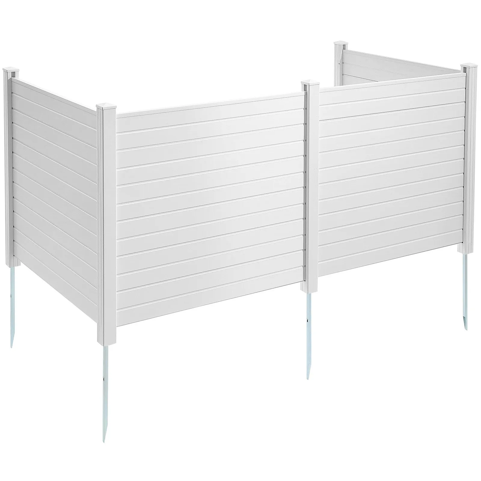 Esteticky príjemné a praktické: Naša vonkajšia zástena na ochranu súkromia je vyrobená z vysoko kvalitného PVC namiesto liatiny, vďaka čomu je odolnejšia voči vode a korózii. Hladký povrch je odolný voči prachu a škvrnám, zatiaľ čo jednoduchá biela farba doplní každé prostredie. Pre ešte väčšiu praktickosť boli plastové nožičky nahradené kovovými, čím sa zvyšuje celková odolnosť. Ochranné krytky v tvare dáždnika znižujú hromadenie vody.