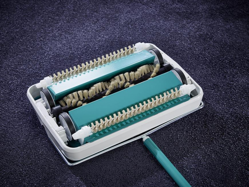 Rýchlo zametá prach, špinu, vlasy, chlpy a drobné nečistoty z kobercov, použitie bez elektrickej energie, tri otočné kefy, šírka kief 22 cm, veľký otočný gombík na regulovanie výšky, sklopná rukoväť na upratovanie pod nábytkom, 2 roky záruka.