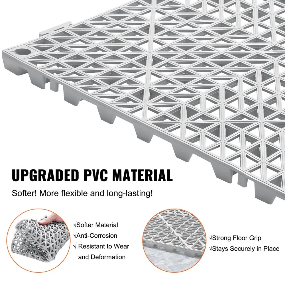 • Efektívne odvodnenie: Našich 50 vzájomne prepojených drenážnych rohoží s rozmermi 30 x 30 cm (12 x 12 palcov) má vylepšené 15 mm (0,6 palca) podporné kolíky pre rýchly odtok vody. Rozlúčte sa s otravným hromadením povrchovej vody a vychutnajte si sviežejšie prostredie bez zápachu. Tieto vodeodolné drenážne podlahové dlaždice ponúkajú protišmykový povrch pre väčšiu bezpečnosť.
