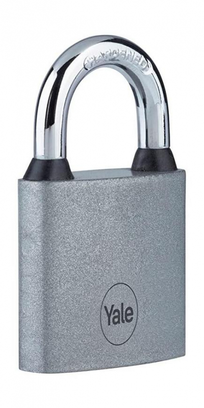 Visiaci zámok Yale so šírkou 38 mm so štandardnou úrovňou zabezpečenia. Železná konštrukcia disponuje tvrdeným strmeňom, ktorý zabraňuje prerezaniu. Odolný zámok testovaný na 10 000 cyklov (otvorenie a zatvorenie) pre optimálny výkon. Balenie obsahuje 3 ks kľúčov.