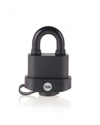 Dvojitý uzamykací zámok Yale z nehrdzavejúcej ocele na zvýšenie bezpečnosti. Obzvlášť odolný voči poveternostným vplyvom vďaka kompletnému krytu a krytu kľúčovej dierky. Telo visiaceho zámku z laminovaných oceľových lamiel s plastovým krytom pre menej škrabancov. Tvrdený oceľový tŕň s plastovým poťahom pre menej škrabancov. Zámok na zaklapnutie s kľúčom na odomknutie.