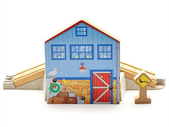 Stačí stlačiť veľké červené tlačidlo v tvare suda a kačica sa rýchlo presunie smerom k farme a späť k jazierku po vyznačenej trati.