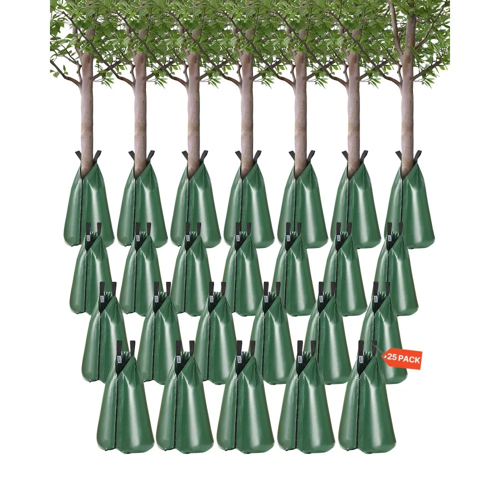 Všestranná kompatibilita: Táto sada obsahuje 25 vreciek na zavlažovanie stromov, každé vhodné pre stromy s priemerom kmeňa 25,4 – 101,6 mm (1 – 4 palce) a minimálnou výškou 635 mm (25 palcov). Pre väčšie stromy jednoducho spojte dve vrecia, aby ste pokryli priemer kmeňa medzi 50,8 – 203,2 mm (2 – 8 palcov).