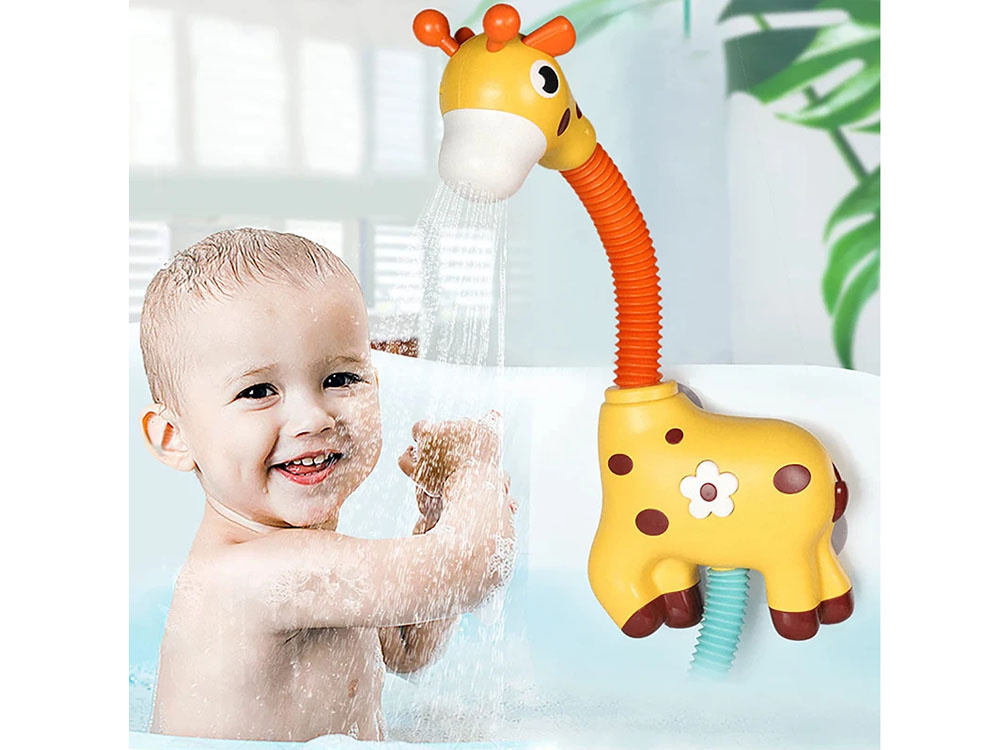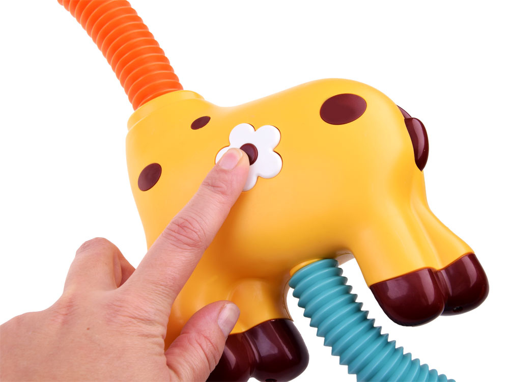 Spodná časť hračky obsahuje pumpu, ktorú treba umiestniť do vane tak, aby bola ponorená. Stlačením tlačidla v tvare kvetu na bruchu žirafy sa nasáje voda, ktorá bude vytekať z otvorov v žirafovej papuli a vytvorí jemný sprchový prúd.