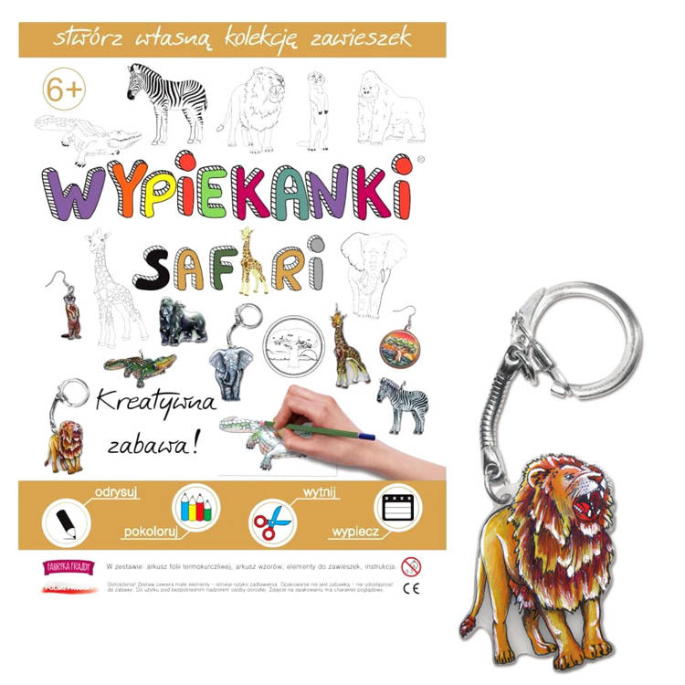 Sada na pečenie Safari je zábavný spôsob, ako zahnať nudu prostredníctvom praktickej a kreatívnej hry pre deti aj dospelých. S touto sadou pečených výrobkov si môžete vyrobiť krásne, farebné a originálne kľúčenky, magnety, náušnice, prívesky alebo iné dekoratívne predmety. Sada obsahuje všetko, čo potrebujete, vrátane príveskov.