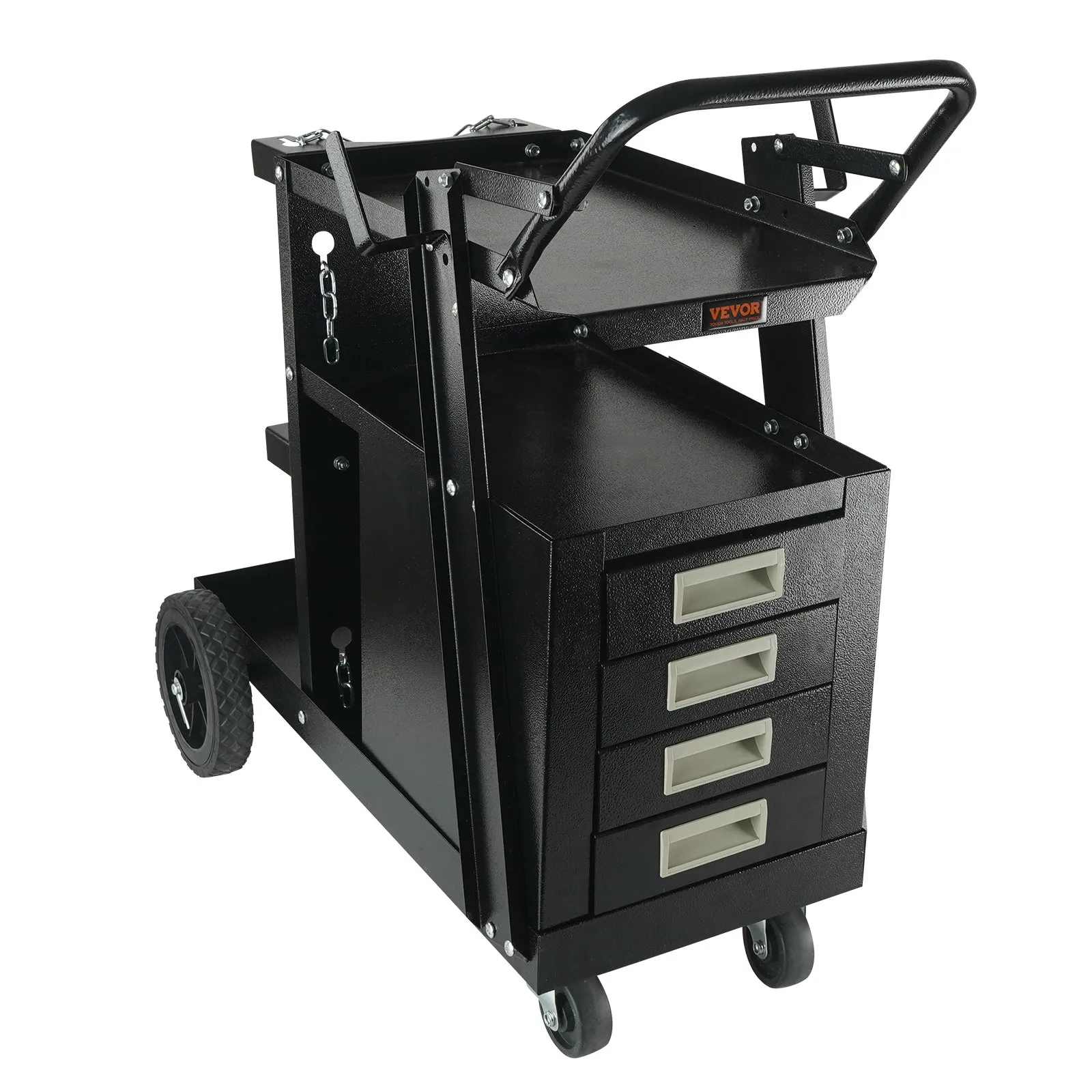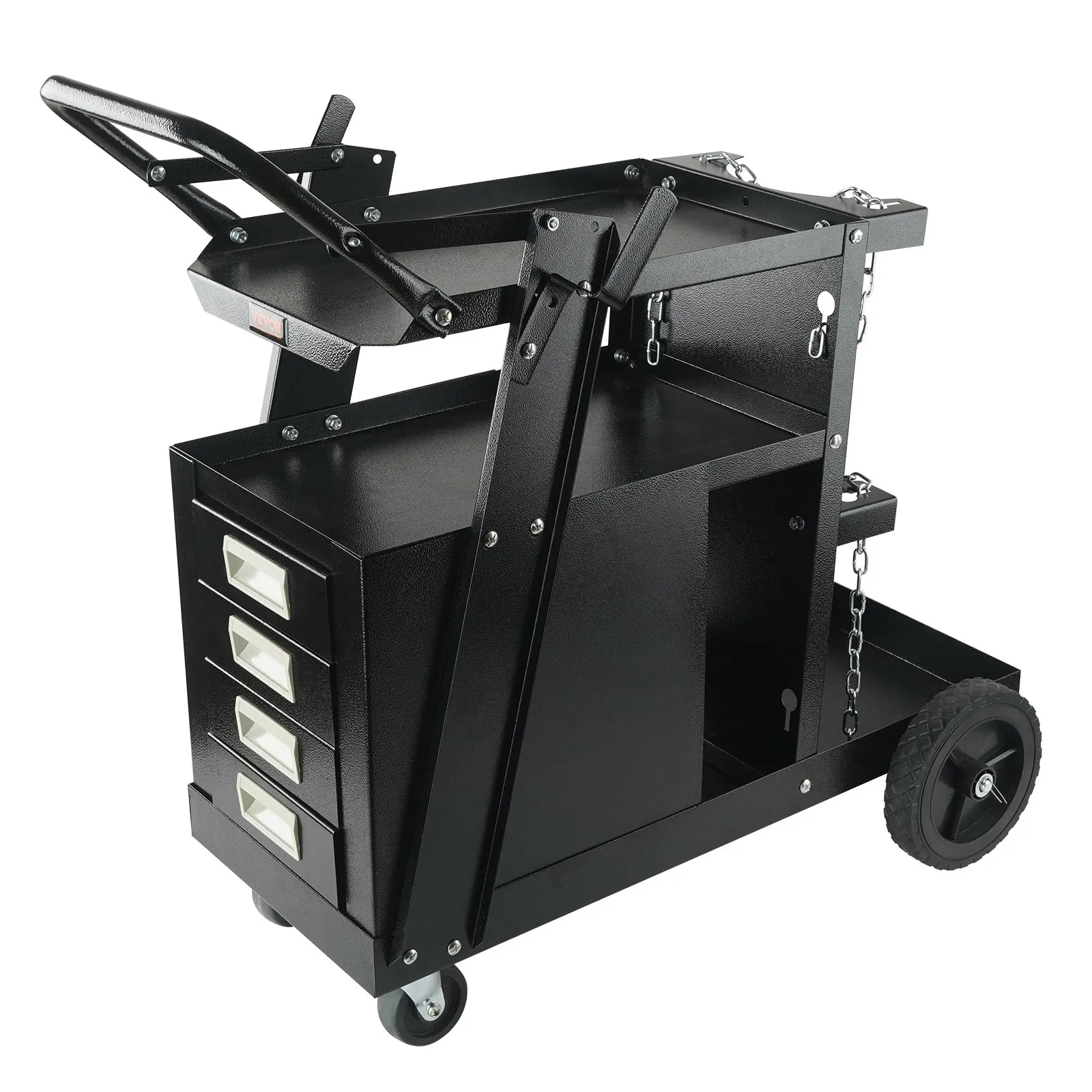 Vysoká nosnosť: Dvojúrovňový zvárací vozík ľahko zvládne rôzne ťažké bremená s maximálnou statickou nosnosťou 120 kg a maximálnou dynamickou nosnosťou 100 kg. Tento vysokovýkonný zvárací vozík je vhodný pre širokú škálu zváračských úloh vrátane ručného zvárania, zvárania v ochrannej atmosfére plynu a zvárania argónom. Všestranné riešenie, ktoré spĺňa vaše potreby mobilného zvárania!