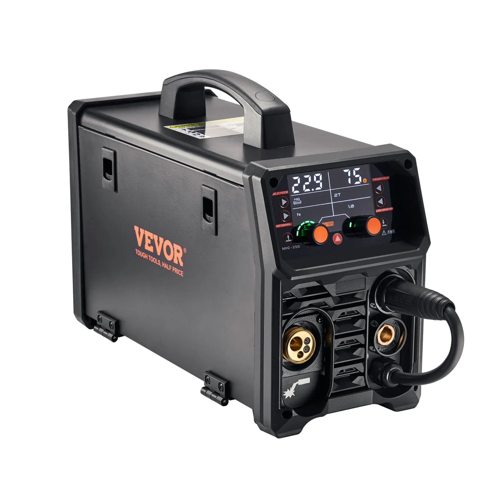 • 5-v-1 MIG zváračka: Táto 250A 5-v-1 Pro MIG zváračka podporuje rôzne funkcie: MIG Pluse, bezplynové MIG, plynové MIG, MMA a Lift TIG. Inovatívna funkcia pulzného zvárania poskytuje rýchle a vysoko kvalitné zvary s nízkym rozstrekom a lepšou reguláciou tepla ako bežné MIG zváračky, čo umožňuje dokonalé zvary pri nižších teplotách (Poznámka: Zvárací horák na hliník nie je súčasťou balenia a je potrebné ho zakúpiť samostatne; Lift TIG horák nie je súčasťou balenia).