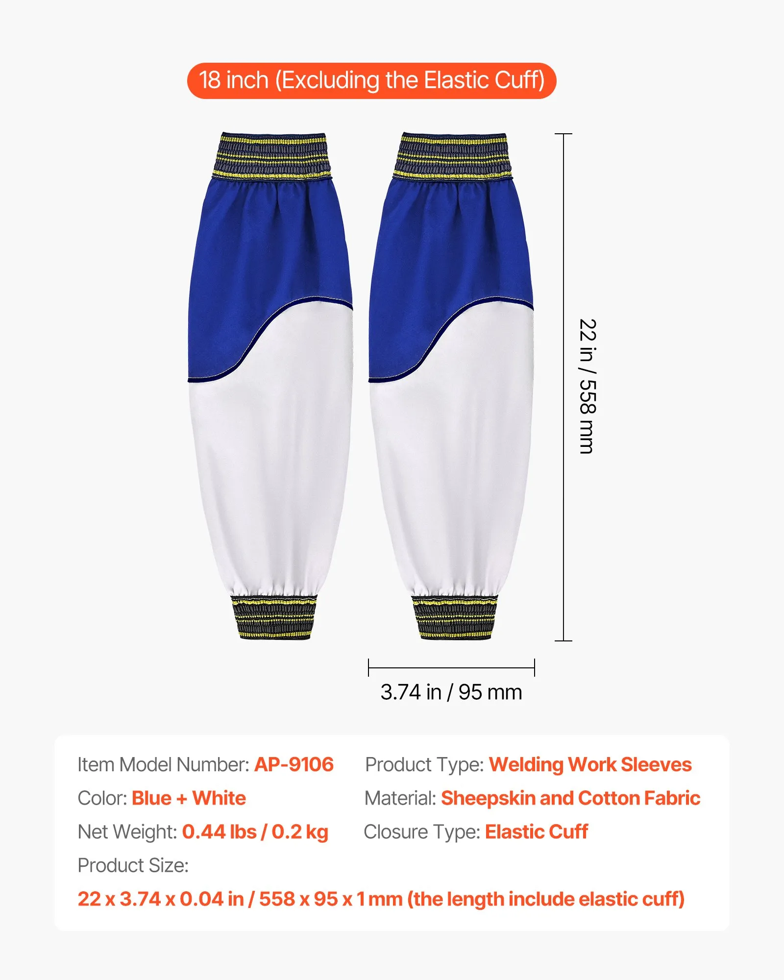 Zváračské návleky, 558×95 mm, z ovčej kože a bavlny s ohňovzdornou úpravou, ochranné návleky pre zváračov s elastickými manžetami na zváranie, kováčstvo a prácu s drevom