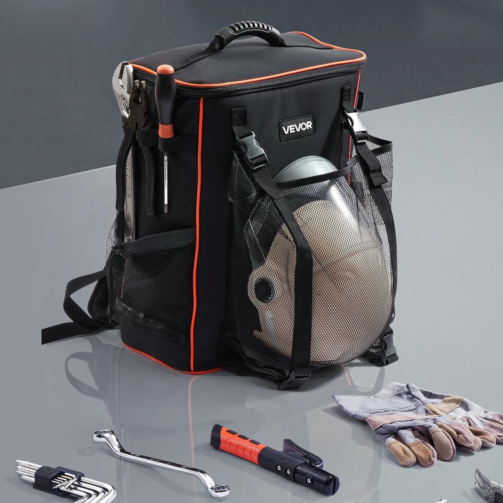 • Vysokokvalitný materiál: Tento batoh na náradie a prilbu pre zváračov je vyrobený z polyesteru 600D, ktorý ponúka vodeodolnosť, odolnosť proti opotrebovaniu a dlhotrvajúcu životnosť. Je ľahký, ľahko sa čistí a má hladký zips a protišmykové opierky na nohách na spodnej strane, vďaka čomu je ideálny pre rôzne pracovné prostredia.